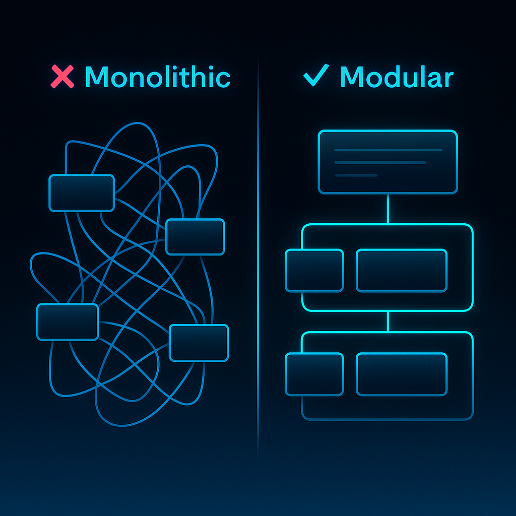 Modular design breaks your codebase into smaller, focused units of functionality. Each unit (or module) does one thing well, with clear boundaries.